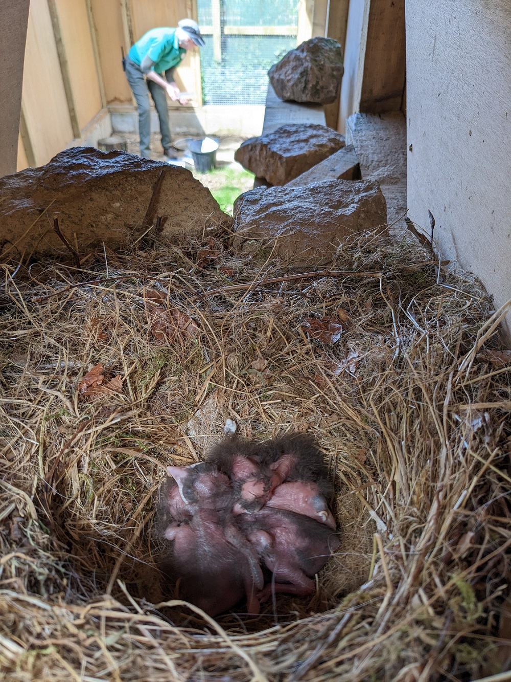 The five new purpose-built chough breeding aviaries were finished on time, and the breeding pairs were put in place on Valentine’s Day as planned. This year we had eight pairs of choughs set up in seclusion aviaries, with another pair in our original chough aviary in the main park (first used in 1976). The remaining birds of our flock stayed in the large poyltunnel flight aviaries – where one pair was also successful, and raised a single chick.