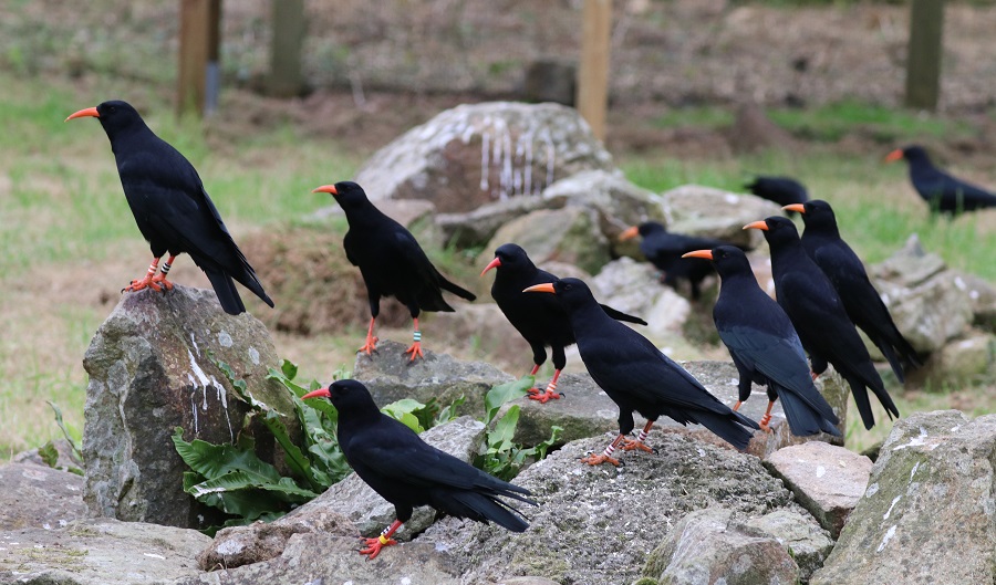 Paradise Park’s founder, Mike Reynolds, had been interested in restoring Red-billed Choughs to Cornwall since the park had opened in 1973. Working with Padstow Bird Gardens, there have been choughs at Paradise Park almost since day one. We bred our first chough chick in 1976, and funded a PhD on chough ecology by Dr Richard Meyer. We continued to expand our flock, which is now some fifty birds strong, and have donated dozens of choughs to our restoration partners.